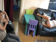 Big brother teaches his little 18 year old stepsister how to play on the cell phone and as a thank you she lets him fuck her pus